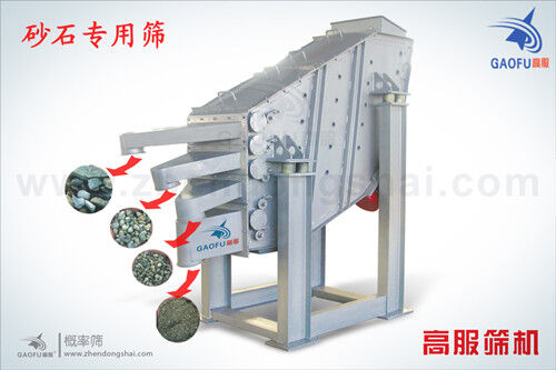 砂石振动筛-高服概率筛分机在砂石生产线的工艺中,放在提升机后面专用于砂石筛分。与普通筛机相比,概率筛具有较高的 筛分效率和筛分产量,,概率筛从时产30吨到时产80吨的砂浆都可用单台机器达到生产要求,我司经过多年的实践,筛网的结构几 经改进更新,现筛网使用寿命长,换网简单,筛分时具有自动清网的功能,概率筛的优势是普通振动筛所不能替代的。