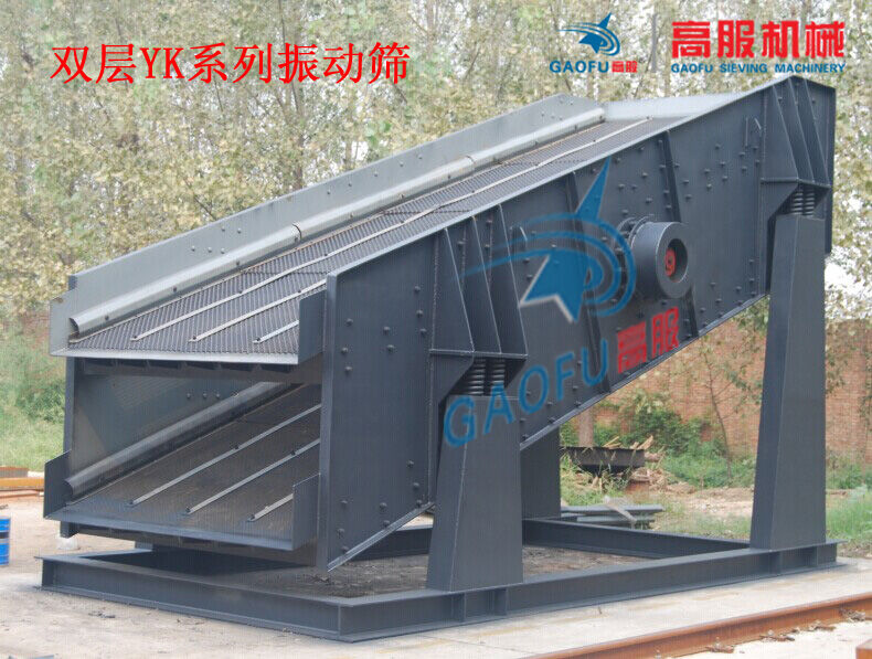 砂石分级筛-YK系列块偏心圆振动筛是我们新乡市高服筛分机械公司专业设计和生产的砂石、矿石等选矿筛分专用矿用筛分机。是YA型轴偏心圆振动筛的更新换代产品。该系列筛机系我公司根据国内外振动机械的研发和应用水平、引进德国、日本等国同行业先进技术、结合我国实际运行环境充分优化而设计的新型高效振动筛。