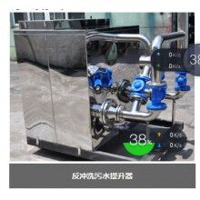 污水泵起动排污,将污水连同杂物一同经污水排出口输送到室外化粪池或城市污水管道,当液位降低到设定值时污水泵自动停止运行。