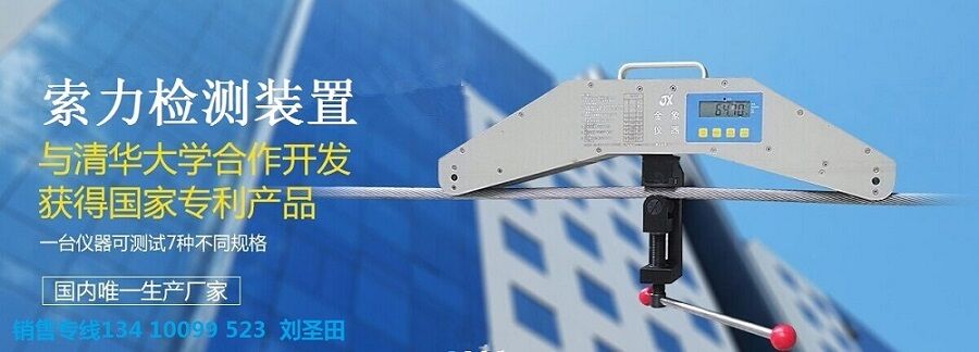 ※ 索张力仪的特点操作简便,在不损坏原结构的前题下可快速、准确的得到测量结果。仪器本身体积小,重量轻。携带方便。本公司研制的张力测试仪适用于建筑玻璃幕墙行业、高速铁路、电力行业、索道运输行业、桥梁等。仪器结构简单、性能稳定、测量精度高、本产品已经获得专利授权,并完全符合国家和国际标准,是全国唯一一家生产预应力钢索张力测试仪的厂家。我们的索力测定仪已经在几百项工程中使用过,实践证明效果是良好的。