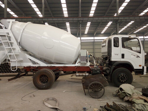 搅拌筒:该车型所采用的搅拌筒形式是一种应用较为普遍的结构形式,搅拌筒采用梨形结构,其清洗用水和运输过程中视需要补充加入的拌合水,均由搅拌筒头部进料口处注入筒内。