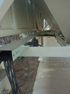 8. 斜皮带机靠近主楼位置增加了一条支腿,将斜皮带机和主楼完全分离,消除了上料时振动对计量的影响。