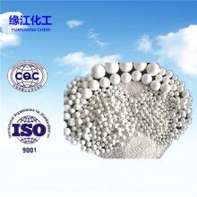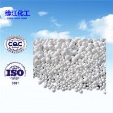 缘江牌-活性氧化铝双氧水用5-7毫米本品为白色、球状多孔性物质;无毒、无臭、无味、不溶于水、酯、烃、醇、等有机溶剂,具有在水和碱中不粉化、不变软、澄清度高,使用寿命长,对蒽醌衍生物降 解和再生能力强等优点,是蒽醌法生产双氧水的专用吸附剂。本产品除吸附工作液中的碱以外,对氢化降解物有很强的再生能力,可将氢化反应中增加的降解物转化 成有效蒽醌,保证了总有效蒽醌量的稳定,有利于氧化反应的进行,并减少了蒽醌的添加量,节约了运行成本。同时,考虑到再生的需要,双氧水用氧化铝保证了良 好的机械性能,再生后的活性变化较小。