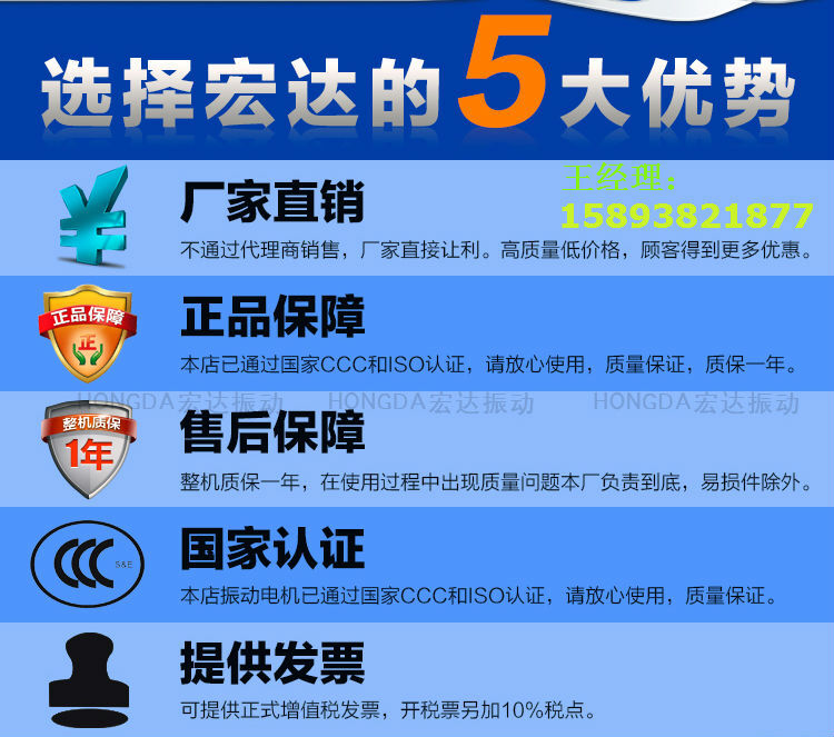 本产品均按国家三包规定,其中高频控制主机:二年包换,终身维修。高频振动电机:保修1年,终身维修(不含运费)。