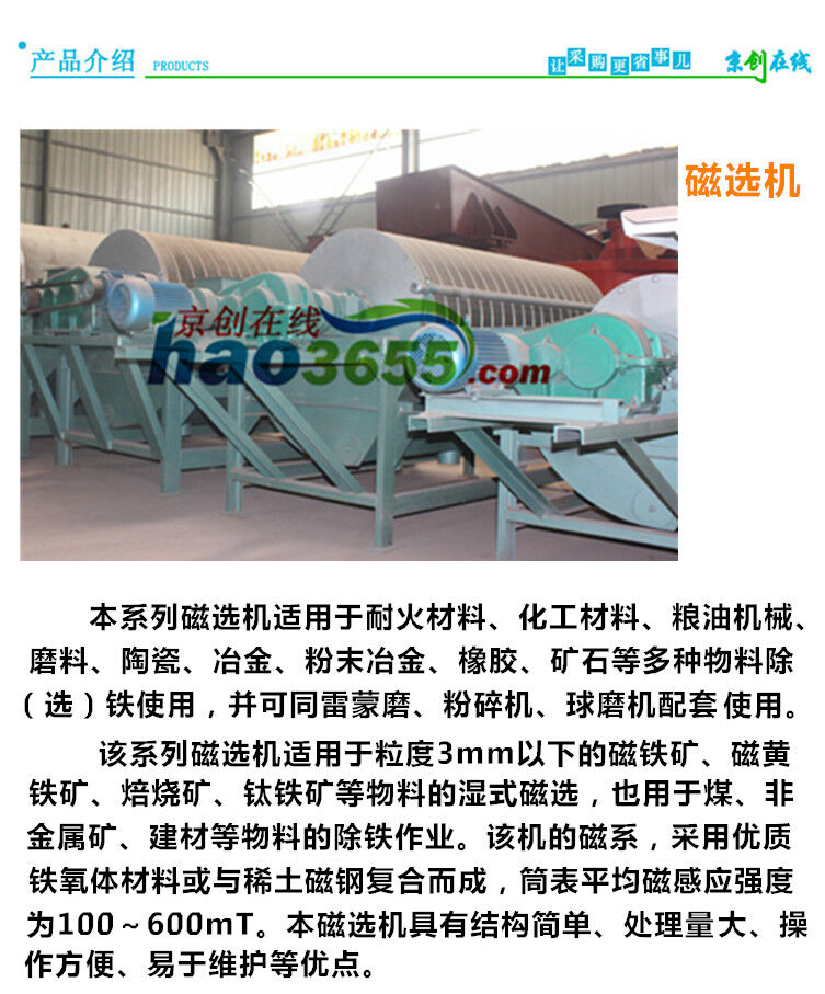 (5)、排出磁选机内的磁性矿物。并周期地重复上述程序。磁选过程顺序控制由顺序控制器(见选矿设备顺序控制器)实现,根据工艺要求的控制顺序预先编程,并存入顺序控制器内。