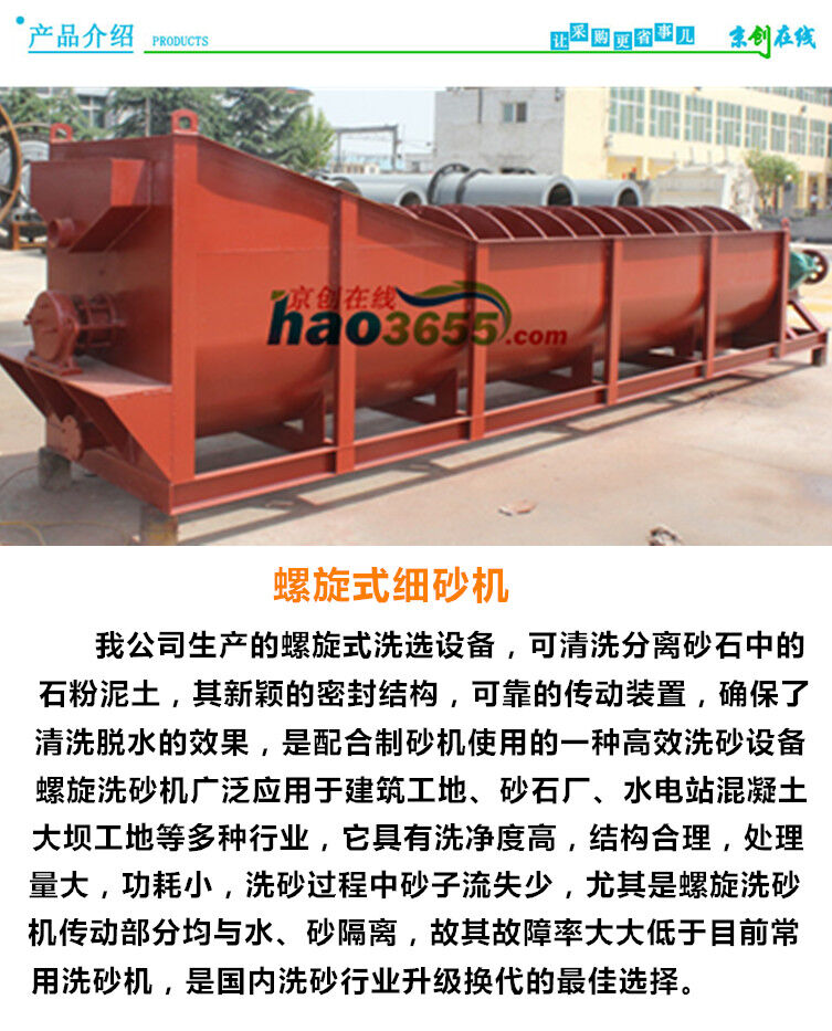 螺旋洗砂机FG系列适用于冶金、建材、水电等行业的洗选、分级、除杂等作业,用于细粒度和粗粒度物料的洗选作业。对建筑用砂、筑路用砂石犹为适宜。螺旋砂石洗选机功率消耗小、洗净度高。密封结构好、全封闭传动装置、可调式堰板,确保了产品高效、耐用,清洗、脱水效果好,细粒产品保持稳定等特点。