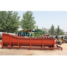 FG系列螺旋洗砂机工作时,电机通过三角带、减速机、齿轮减速后带动叶轮缓慢转动,砂石有给料槽进入洗槽中,在叶轮的带动下翻滚,并互相研磨,除去覆盖砂石表面的杂质,同时破坏包覆砂粒的水汽层,以利于脱水;同时加水,形成强大水流,及时将杂质及比重小的异物带走,并从溢出口洗槽排出,完成清洗作用。干净的砂石由叶片带走,最后砂石从旋转的叶轮倒入出料槽,完成砂石的清洗作用。