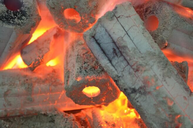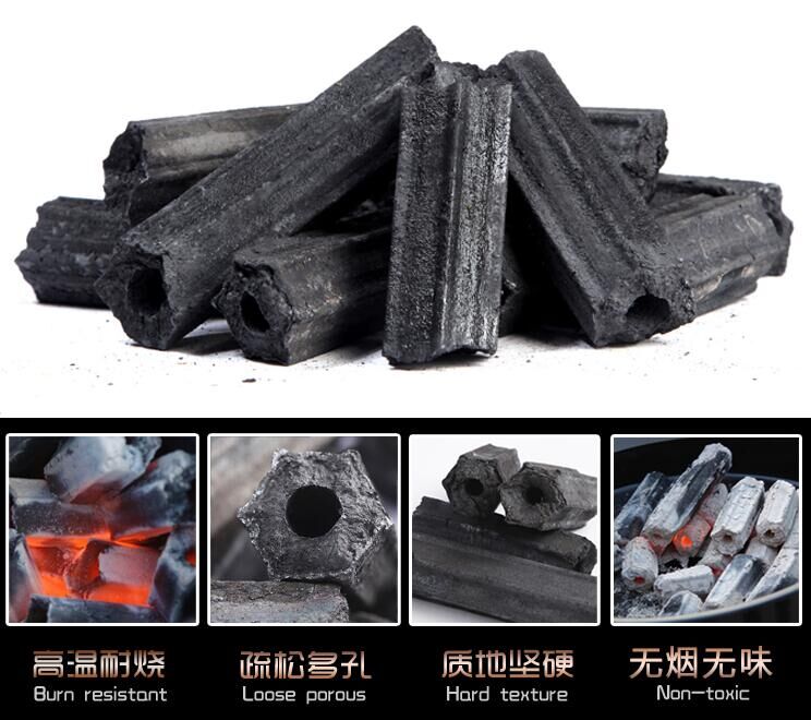 易燃速燃碳,无毒易燃碳多选用钒宇牌机制炭,机制碳具备大小均匀,燃烧时间长,火力均匀,无烟,价格不贵。