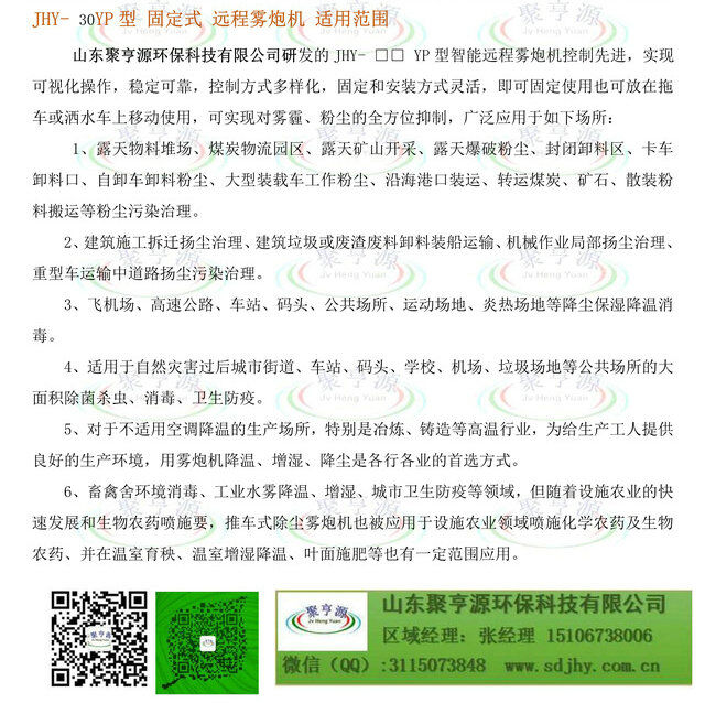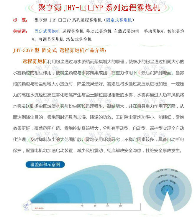 归属行业:聚亨源JHY-□□YP系列远程雾炮机