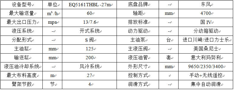 该泵车集高可靠性、高经济性、高耐用性于一体,底盘、动力、电控、液压、泵送系统合理匹配。臂架伸缩灵活快捷、支腿占地空间小、整车移动方便,机动灵活,稳定安全,智能高效。