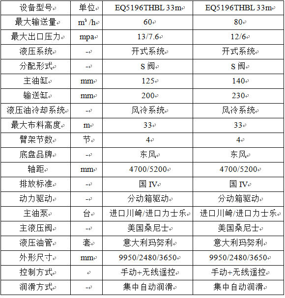 搅拌一体臂架泵车基本配置表