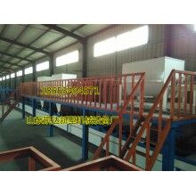 2、技术参数:外形尺寸:长45m×宽5.0m×高5.0m 装机功率:40kw 制板规格:长1.2m×宽0.6m×厚20-100mm 工作效率:班产1700—2000m2
