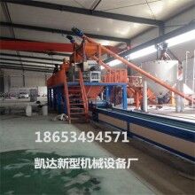 1、自动制板机;本机采用自动化多道辊压、布网、铺无纺布制板,一次成型,制板速度快,板材料光滑平整,规格任意调整,厚薄均匀,本机在砂浆状态下,上下按顺序布料布网,同机实现复合制作与EPS聚苯板或XPS挤塑板复合一次性成型,并在复合板里面形成砂浆网状立体联接结构。由于采用的技术先进,工艺独特,不仅是生产效率成倍提高,制板成本大幅降低,而且极大的提高了保温板的综合质量,机械强度和面层的粘结牢度,从根本上克服了传统聚苯板和挤塑板现场施工造成的重复劳动复杂工序、及粘结不牢固、施工成本高等缺点。
