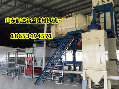1:设备产量高,采用专供本公司《凯达新型建材机械》,每16秒可生产板材规格《300MM*600MM*厚度随调》六块合格产品。