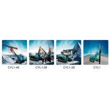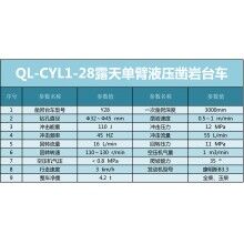 采用折叠臂液压操作方式,以履带行走和柴油机为动力,液压驱动的全液压采矿台车。工作结构具有起落、平移、扇摆、补偿、推进等动作,同时具有移动迅速、开孔稳定、耗能低、爬坡能力强,操作简单等特点。可进行多角度作业和排孔作业,台车独有油缸液压锁装置,采用小体积吸尘器并配有排渣用的空气压缩机。