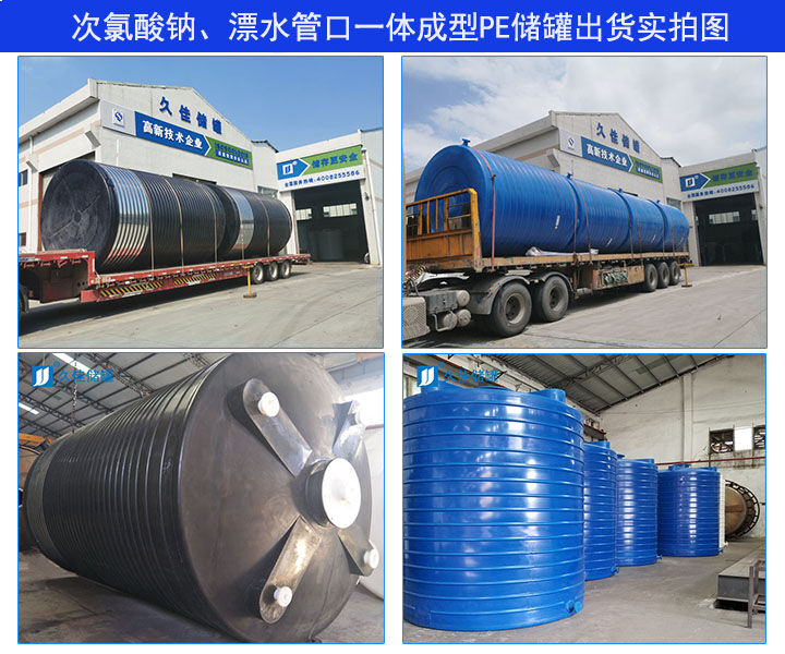 次氯酸钠储罐材质 次氯酸钠溶液储存罐 久塑牌次氯酸钠储罐采用化学性能稳定、耐酸碱防腐蚀性的全新进口滚塑级抗氧化室外专用LLDPPE料,滚塑整体一次成型技术制作,大大加强了塑料储存罐的防爆裂、破损、老化、撞击能量,使用寿命平均在10年以上,无接缝,坚固耐用,耐各种酸碱、防腐蚀、寿命长。是不锈钢、铝制品、有机玻璃、塑焊板的理想换代品。