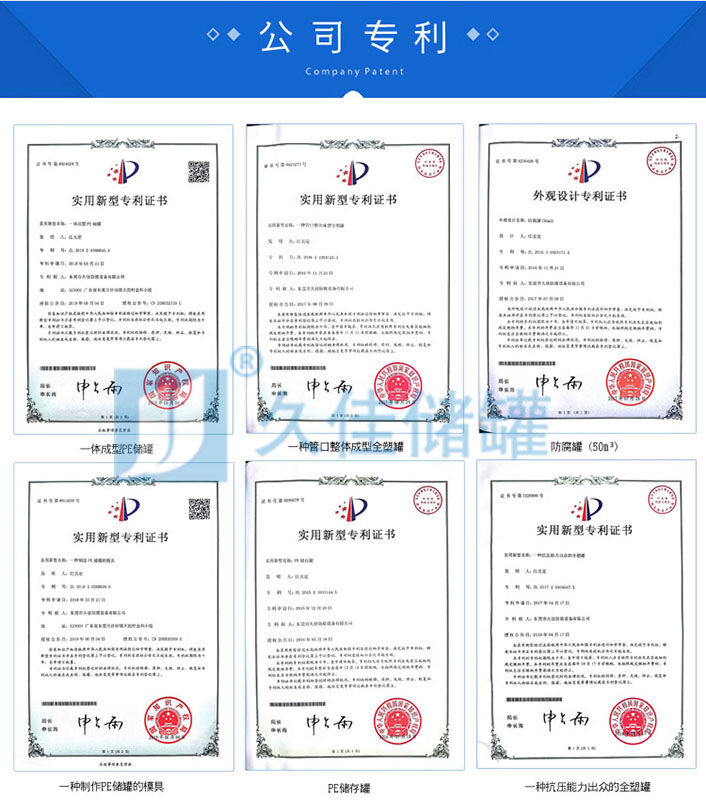 2、东莞久佳出品的塑料储罐的材质为滚塑专用料——线性低密度聚乙烯(LLDPE)或线性中密度聚乙烯(LMDPE)。它可以盛装常温下的无机酸、碱、盐大部份物质及许多有机物;