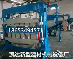 龙传送会破坏珍珠岩颗粒。4:自动码垛机;压板机压板后码垛机自动把板材码垛,进入烘干房或挪走自然养护。5:以上设备都是为压板机服务的,所以所有辅助设备的用时,都小于压板机的用量。这样理论上的产量和实际产量相等。6:压板机;20秒一次行程,一次性程压制10块板材,每分钟压制30块板材。上下油缸内安装有强制限位器,这样才能保证生产的