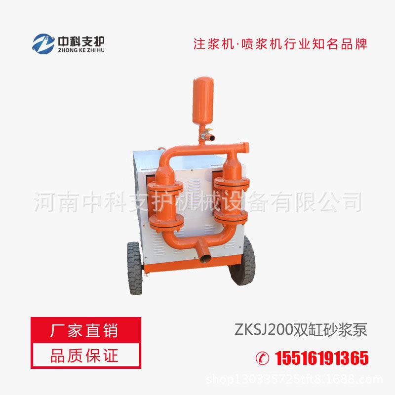 ZKSJ200型双缸双液砂浆泵是利用压力是易凝固的物质或混合料向岩层或土壤的裂隙或空腔进行注射,以便防止渗漏或坚固基础。双缸砂浆泵采用双缸作用,液压驱动,机器工作可靠,泵送压力高。