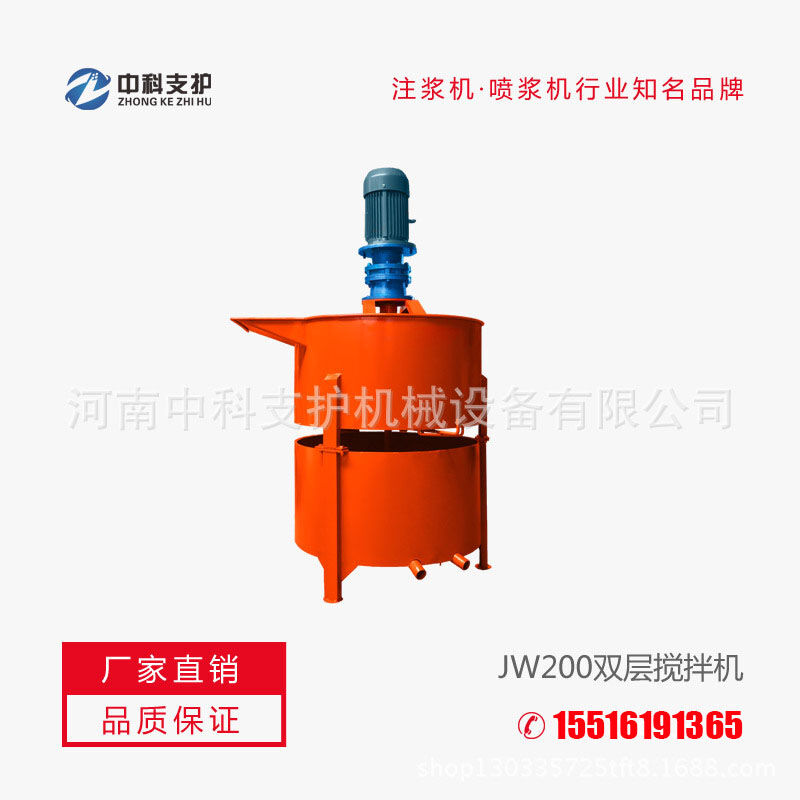 JW200双层搅拌机是二次搅拌机,可以连续搅拌水泥灰浆,砂浆,是注浆泵的最佳配套设备。分电机、减速机、搅拌桶、储料桶四部分.用于灰浆搅拌,可用于建筑冶金、铁路桥梁、预应力等工程施工和维护。
