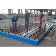 又名铸铁基础平台,按JB/T7974-1999标准制造,产品制成盘板式和箱体式,工作面有长方形,正方形或圆形,材料HT200-300、QT400-600、ZG15-45。工作面采用刮研工艺,工作面上可加工V型、T型、U型槽、燕尾槽、圆孔、长孔等。
