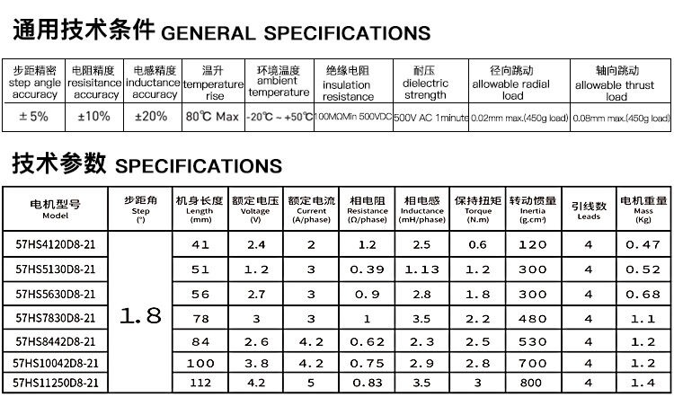 归属行业:两相1.8°混合式步进电机57系列步进电机