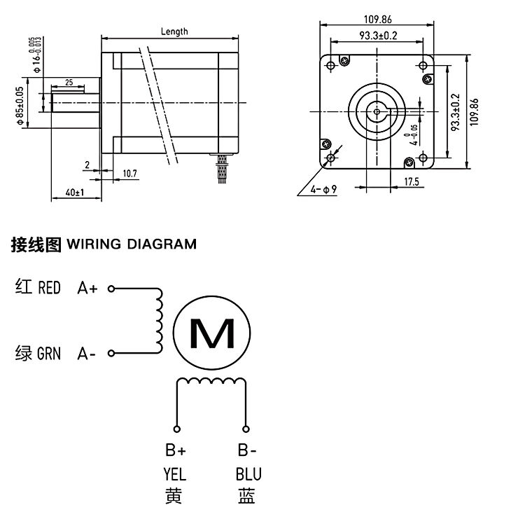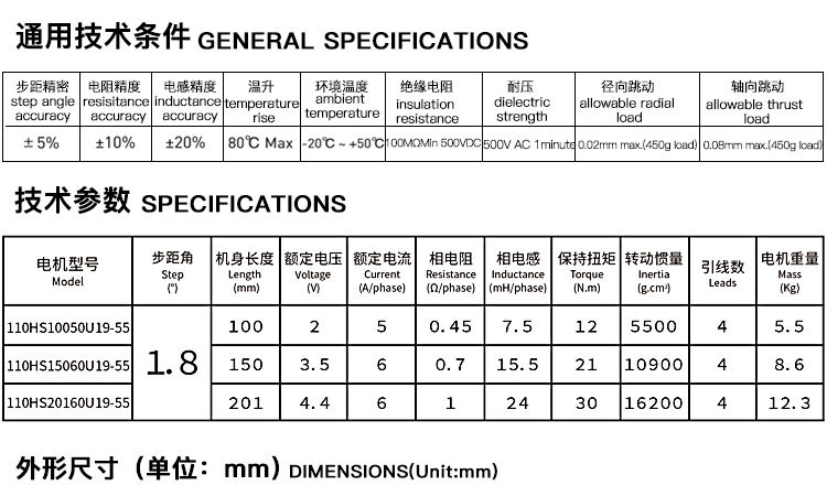 归属行业:两相1.8°混合式步进电机110系列步进电机
