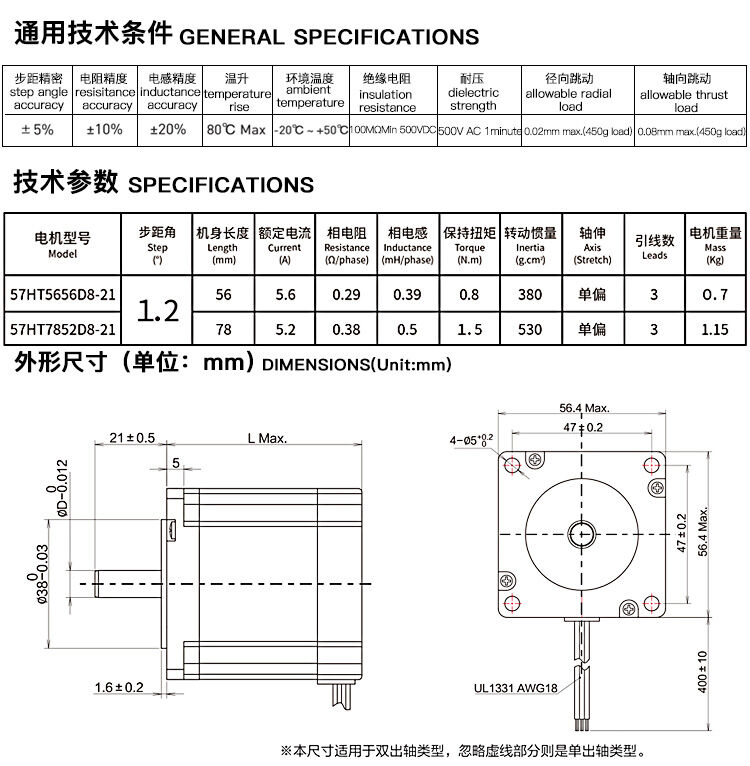 两相1.8°混合式步进电机39系列步进电机