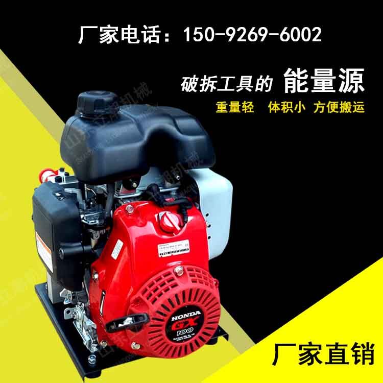 液压机动泵是利用汽油发动机产生的动力,通过曲轴转动产生的离心力,驱使油箱内的液压油为破拆工具提供能量。这种液压机动泵作为液压动力源,主要应用就是与专业破拆工具配套使用;结构紧凑,机动性强、轻便、外形美观,油管可快速链接工具,发动机的冷却条件好。它分有单段式与双段式,适用于千斤顶,穿孔器、电缆剪、螺母破切器、铜排弯曲、切断等工具。是利用汽油发动机产生的动力,通过曲轴转动产生的离心力,驱使油箱内的液压油为破拆工具提供能量,与专业破拆工具配套使用。