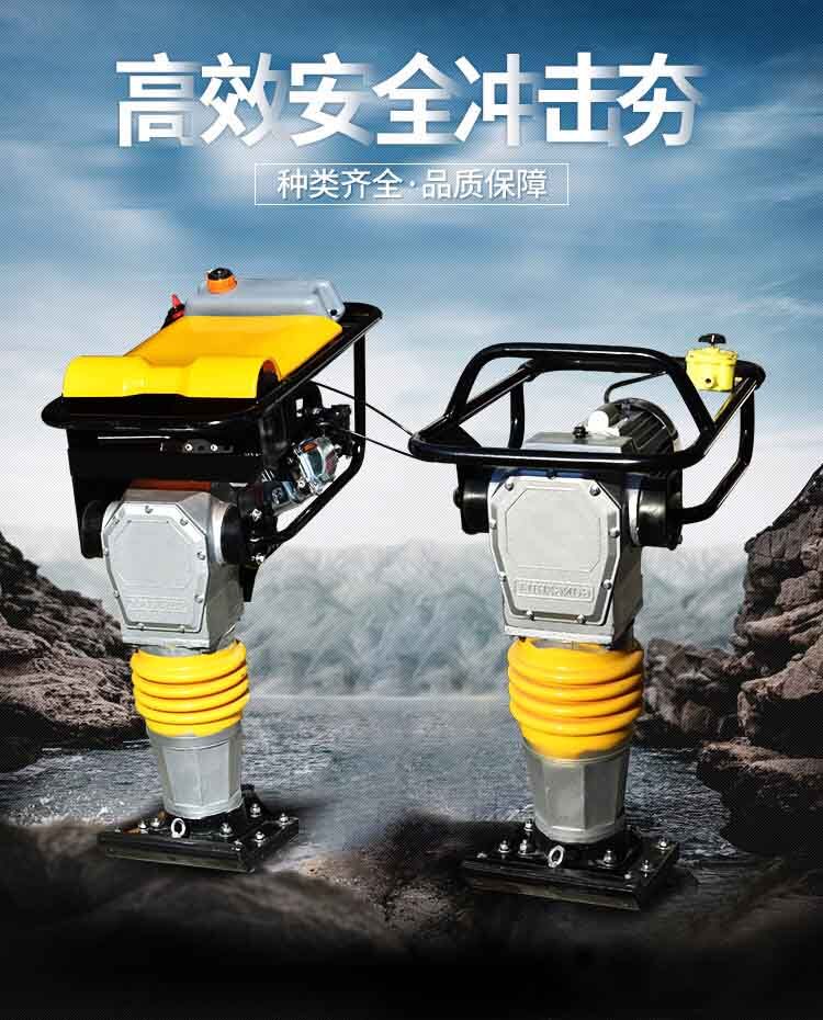 夯实力大、操作灵活、使用安全、适应范围广、效率高等特点。但其夯锤面积有限,因此不宜用于大面积土方的夯实作业。对于砂土、砾石则需另选用震动捣固机予以捣实。