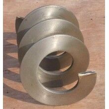常见的螺旋叶片有连续型螺旋叶片、单片螺旋叶片、等厚螺旋叶片,根据不同的使用要求,选择合适的。将其安装在密闭的管道或半封闭的U型槽中,一端配备动力,就可组成螺旋输送机。在设备运转进程中发挥着重要效果,因为设备运用的不一样,所以在加工螺旋叶片中需求分外留意加工方式。