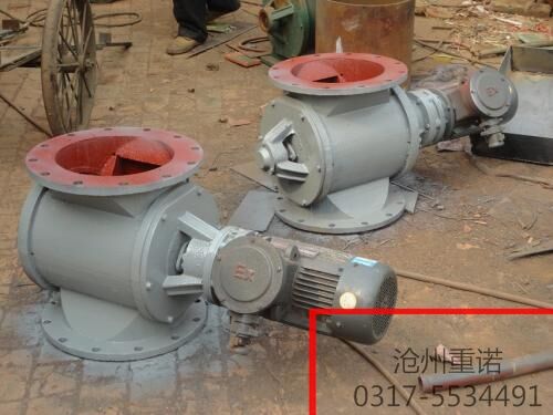 星形卸灰阀一般用在气力输出系统中,对于除尘设备或者其它设备的压力输出系统或负压输出系统,星型卸料器(卸灰阀)可以均匀,连续地向卸料器内供料,以保证卸料锁风阀气力输出管内的气体,固体比较稳定,从而使卸料锁风阀的气力输送能正常工作.同时,又能将卸料锁风阀的上,下部气压隔断而起到卸料锁气作用.因此,星型卸料锁风阀是气力输送系统中常用的重要部件。当上部料仓的物料靠自重落下充填在叶片之间的空隙中,随叶片的旋转而在下部卸出, 因此,星型卸料器可以定量而连续地卸料。星形卸灰阀,俗称卸料器,卸灰阀,由带有数片叶片的转子叶轮、壳体、减速机及密封件组成。主要安装于除尘器的灰斗排灰,也可广泛用于化工、冶金、矿山、机械、电力、粮食等行业的给料卸灰系统的卸料装置。具有结构简单、使用方便、易操作、运转平稳、耗电量低、噪音小、使用寿命长等优点。 星型卸灰阀的法兰接口方式主要有两种,方口为A 型,圆口为B型。也可根据客户要求定做长方形及其他异形规格的卸灰阀。 星型卸灰阀一般都安装在除尘器灰斗下部,为保证连接处的严密不漏风,在回转卸灰阀的上部应经常保持(储存)一定高度的粉尘。因为叶轮转动时,卸完粉尘后叶轮转上的那一面经常是没有粉尘的,所以容易使空气漏入。为了保持一定高度的灰柱,而且不致卸空,在灰斗内装设料位信号设施,并与卸尘阀的电动机建立连锁。本排灰阀采用00号减速机专用润滑脂,请定期检查,加油。星型排灰阀是除尘设备排灰、送风和其它设备给料的主要设备,适用于粉状物料和颗料状物料。该排灰阀为环保、冶金、化工、粮食、食品等工业部门广泛应用。工作原理:星型卸灰阀工作时,粉尘靠重力落入,充满上面和侧面的星形叶片空格。叶片转子由电动机通过减速机转动轴带动,叶轮转到下部粉尘靠自重卸下。
