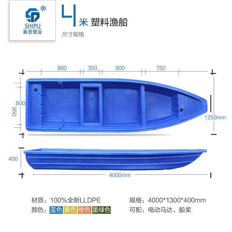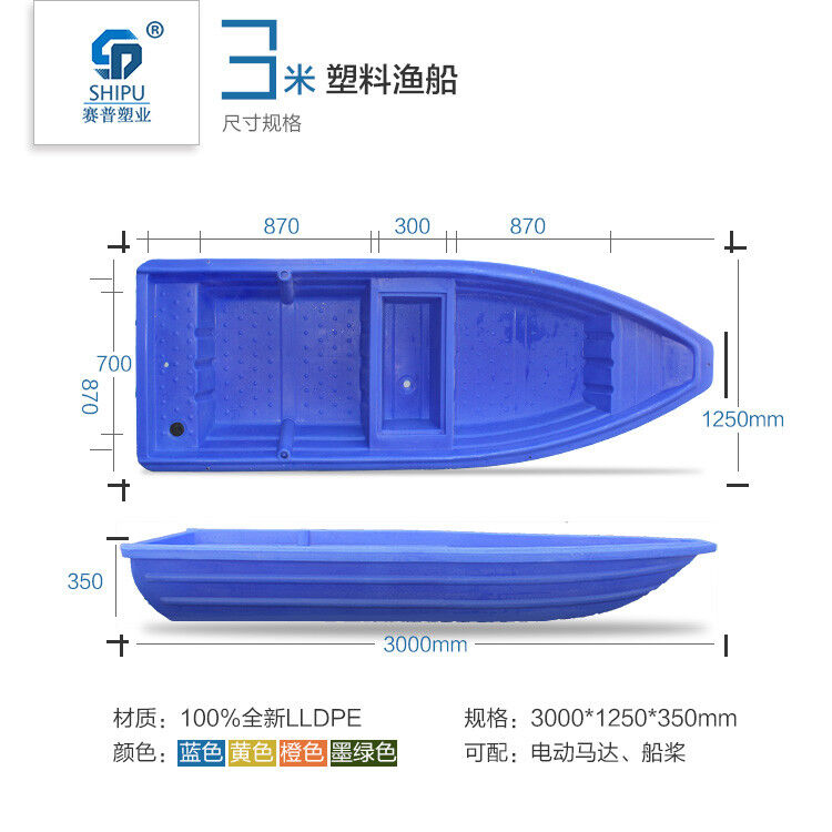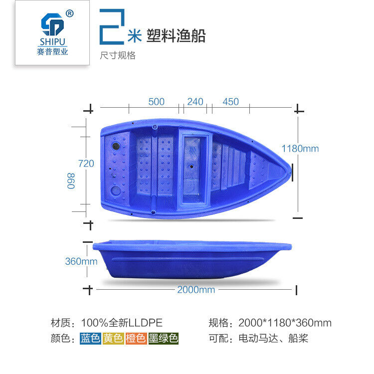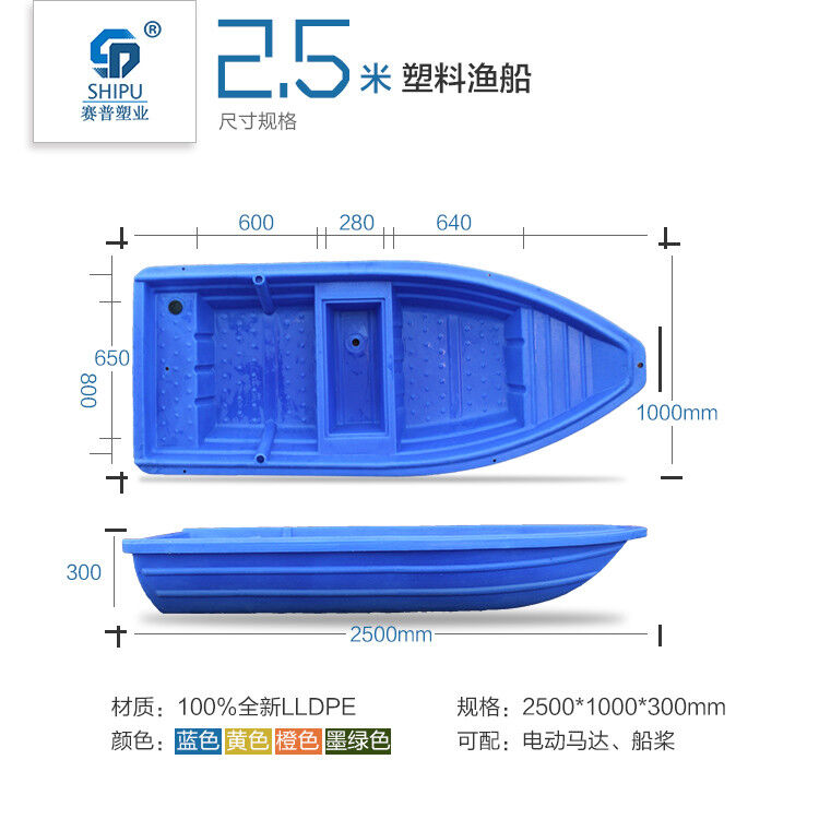 重庆赛普塑料捕鱼船采用进口韩国LLDPE材质,采用国外先进的滚塑工艺整体加工制成。一次成型,无缝焊接。,成本低,稳定性强,抗撞击,耐老化,无需维修。效果远超玻璃钢渔船。使用年限长达30年以上,是新一代的渔船。欲购从速!13650528299(微信同号)
