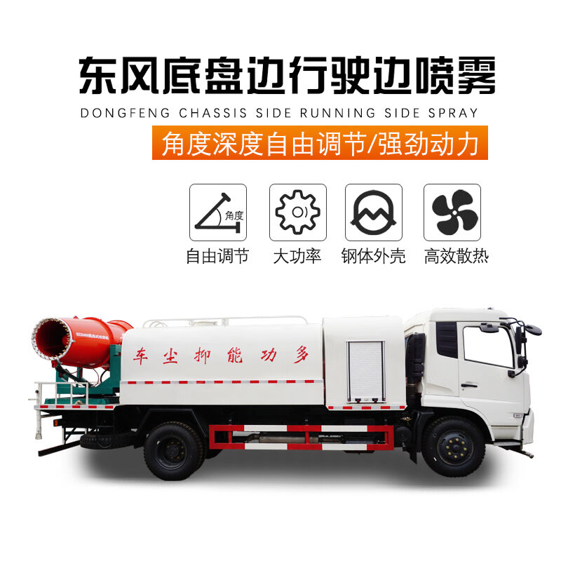 储液罐、自行运载车辆及控制系统组成。抑尘车在冬季的北方地区罐体、喷淋嘴、泵体需要加装保温加热系统,才能正常作业。首先抑制粉尘的技术方法是用液滴将粉尘黏住来抑制粉尘,因为降尘不能大面积的形成水流,所以必须要选择雾化效果好一点的喷嘴,这样喷射出来的颗粒度小,除尘效果与喷雾颗粒直径有密切关系,公司研发了喷雾炮的灵魂部件——喷嘴,更加专业的将水雾化成适合的降尘水雾颗粒,降尘速度快,喷洒更加均匀对灰尘的粘附性比较好,利用水滴的张力能够大范围的迅速的捕捉灰尘,大范围的喷雾覆盖面积满足大范围的降尘需求,因为雾化颗粒极小,对湿度和水滴严格控制 喷雾降尘达到优佳效果。