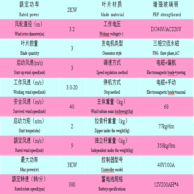 2) 风轮:采用3叶片,发光材料,层流翼型,升阻比高,性能优良。叶片选用玻璃钢,纤维,具有内阻尼大、动态特性好、韧性好,使用可靠不变形。风轮与发电机采用柔性连接,运行平稳无震动、噪音小。