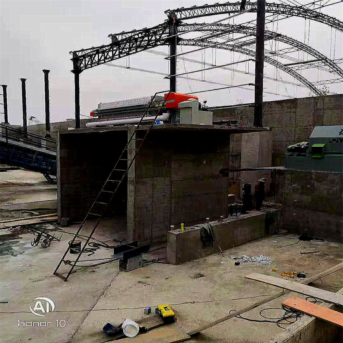 2、压滤机机架整体为钢结构,机架主梁、压紧板、止推板、油缸座焊接后加工处理,再做防腐和油漆。