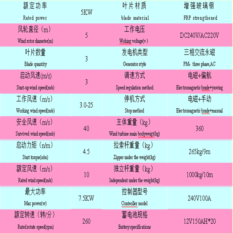 5KW风力发电机可以带电视机、照明、电风扇、洗衣机、冰箱、电饭锅、水泵、空调及其他电器。