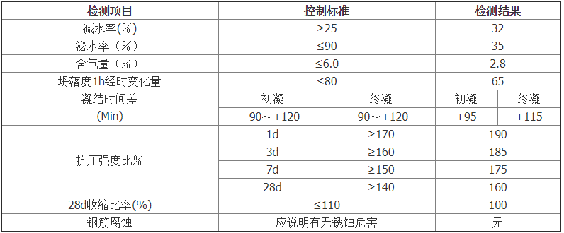(2)掺入ued网站的技术指标对比(以固体含量计掺量C×0.2%):