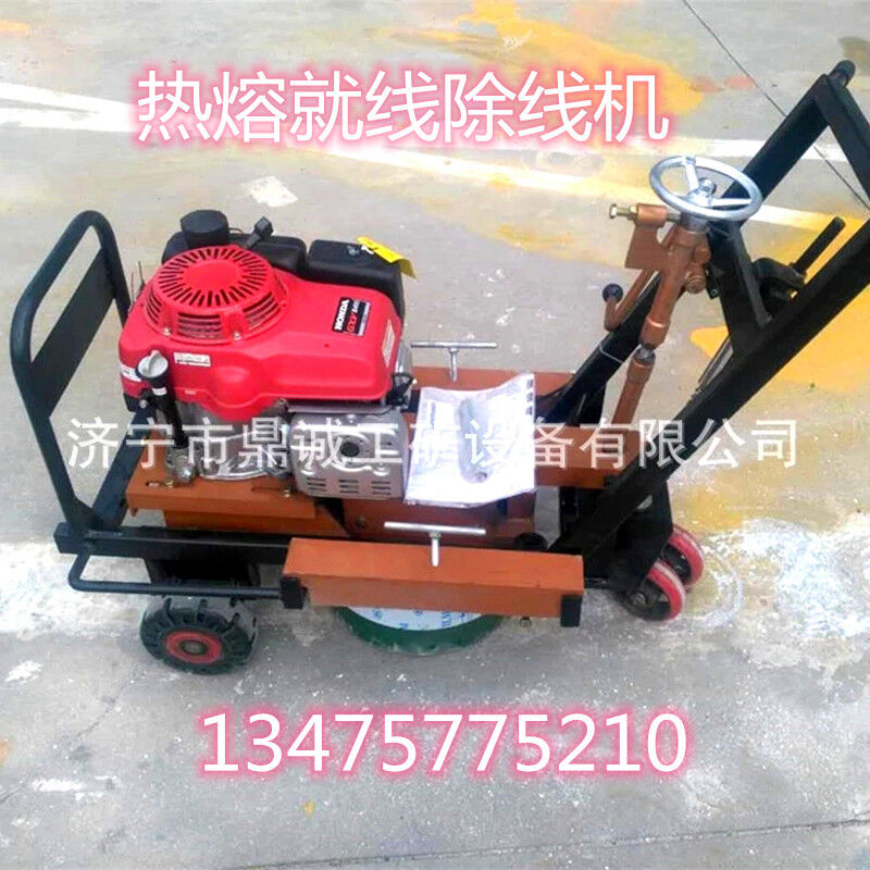 除线机是热熔标线施工前,清除残留旧线的专供设备。热熔旧线清除机是用来清除残损、龟裂、变色等旧热熔标线的专用设备。使用发动机带动打磨头高速旋转,打磨头在旋转离心力的作用下与路面凸起部分磨合,将旧线清除干净,该机选用进口原装汽油发动机,超耐用硬质合金打磨头,保证了设备的质量,可根据路面与标线的情况调整,具有打磨性能好、速度快、操作保养简单等特点。