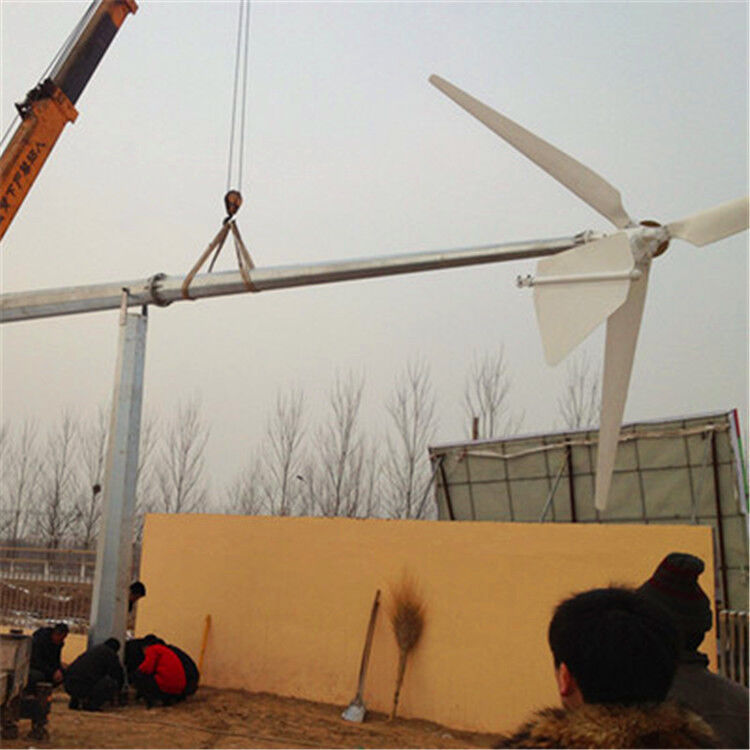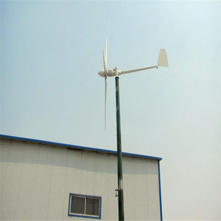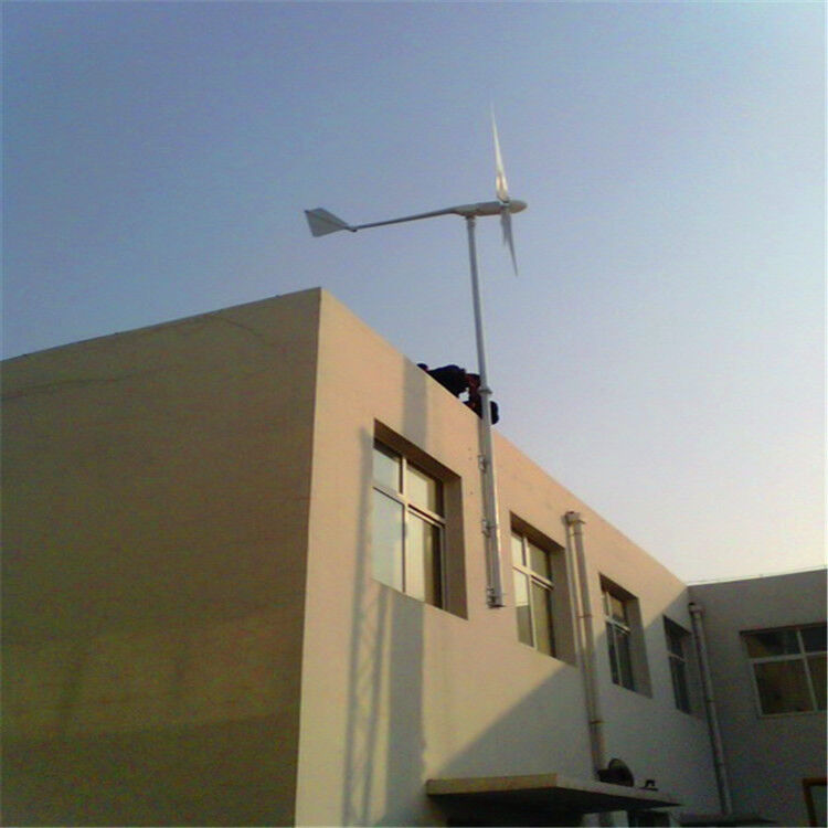 5.独特的简单控制方式,自动迎风,有效提高了风力发电机的工作效率;充分利用空气动力学设计,使风力发电机超出安全风速自动将风轮偏转90度,完全不正面迎风,确保风力发电机运行在安全风速下;尾舵板采用专利转轴工作方式,当控制系统失效的情况下,自身具有的转轴机构,可确保风力发电机不因风速过高而损坏。