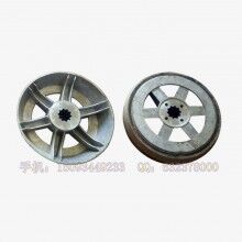 搅拌机提升电机刹车盘 电机刹车枫叶制动轮 铝合金刹车锅。常用的有4.5/5.5kw、7.5kw、11kw的。电机刹车风叶制动轮,也叫电机刹车盘、刹车鼓,可选配锁紧螺母。常用于JS系列ued网站搅拌机的料斗提升电机或者起重机电葫芦电机等方面,用于电机刹车使用。锥形转子电动机的制动装置由套在电机转子上的制动弹簧、风扇制动轮和锁母组成。电动机运行时,锥形转子电动机的气隙磁场产生轴向磁拉力,压缩制动弹簧,使风扇制动轮与电机端盖上的制动环脱开,电机能自由转动。手机:15093449233 QQ:632378000