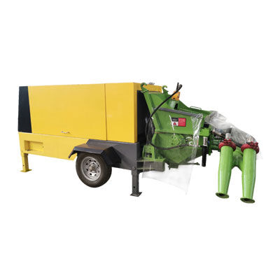 液压湿喷机是利用液压泵产生的推力,使两个油缸往复交替运动,将稠密流物料由输送管道送至混流管处,经压缩空气形成稀薄流通过管道送至喷头处,在喷头处加入一定比例的速凝剂,直接到受喷面上的一种机、电、液三合一的机械设备,被广泛应用于公路、铁路、、水电站等工程建设中。GYP-90液压湿喷机可用于喷浆、充填、注浆、泵送等施工。GYP-90液压湿喷机具有泵送压力高、输送距离远、回弹度低、施工效率高等特点,可用于喷浆、充填、注浆、泵送等工程施工。量连续可调。(无级变速) 河南省双喷头湿喷机