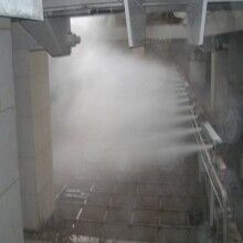 从而达不到抑尘作用,如果水雾颗粒和粉尘颗粒大小接近,粉尘颗粒随气流运动时就会与水雾颗粒碰撞、接触而粘结在-起。随着水雾颗粒越来越小,聚结的机率就越来越大,聚结的粉尘团变得大而重,从而很容易降落。
