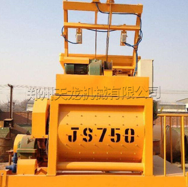 天龙建机生产的JS750搅拌机的重量大概在5吨左右。天龙建机生产的js750ued网站搅拌机的拌筒为两个相连的槽形,其内装有两根水平配置的搅拌轴,当搅拌轴回转时,一方面将搅拌桶底部和中间的混合料向上翻转,另一方面又将混合料沿轴线分别向前后推压从而使混合料得带快速而均匀的搅拌,从而具有良好的搅拌效果。