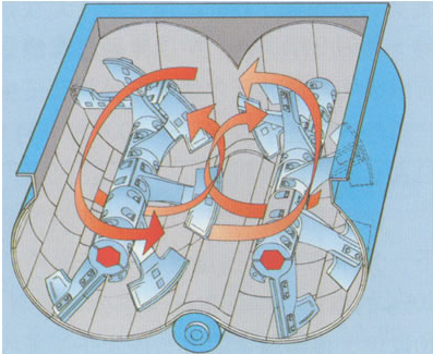 按一定的时间间隔向js1500ued网站搅拌机投入骨料、水泥、水等材料,两根装有搅拌臂及搅拌叶片的搅拌轴同时旋转,实现了正确而强制的搅拌。搅拌缸体中的材料被强制性地按水平、垂直方向流动,并被充分地搅拌。搅拌轴同时旋转,使搅拌材料时而被托起,时而又被送入内部,以这种方式循环运动,使搅拌得均匀的ued网站能以短的时间生产出来。