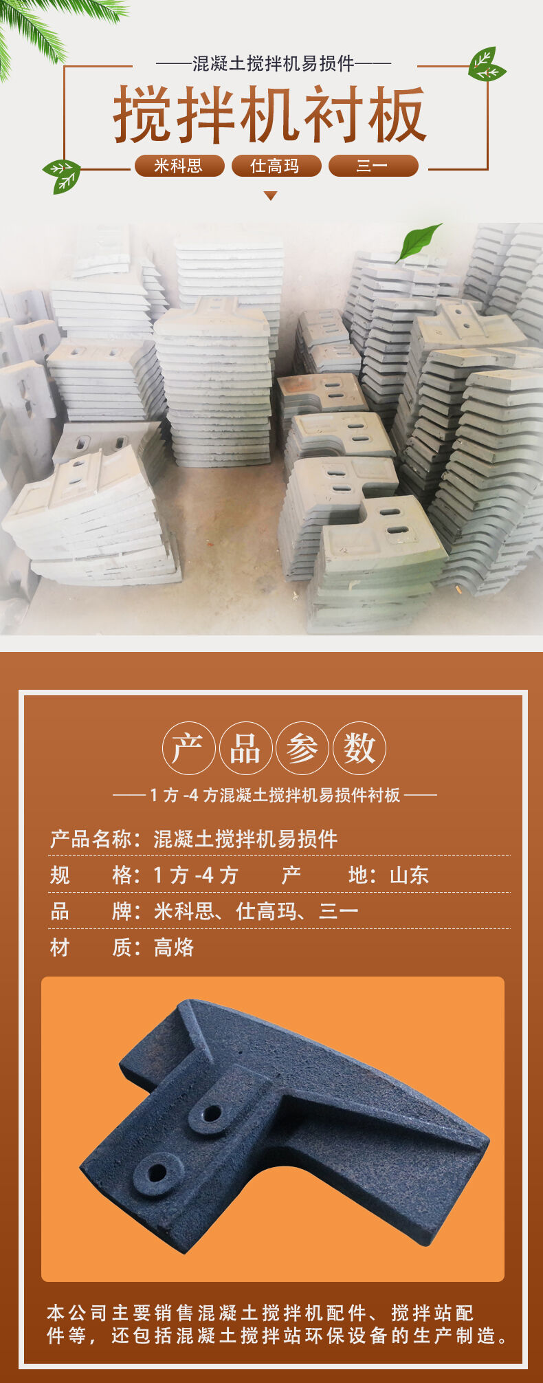 仕高玛、三一、米科思各型号的搅拌衬板易损件。