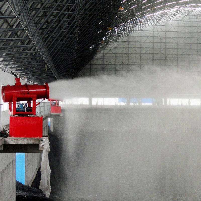 雾炮机降尘系统是用喷嘴将水雾化好之后,喷洒在灰尘较多的起源地,干燥的灰尘在空中慢慢加湿,而且水雾细小在空气中悬浮时间会长一些,能有效的控制粉尘的发生。
