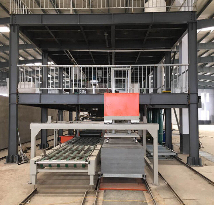 采用自动提升机、电脑自动配料系统,实现轻烧粉、卤水、改性剂等的自动配比及电子计量,螺旋分料、落料。