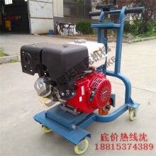 是由动力强劲的发动机作为动力源,通过三角带带动主轴高速旋转,手摇升降手轮使主轴下降,切割裂缝,前行走轮采用万向轮,使整机在工作中可以按照裂缝自然形成的曲线进行切槽。