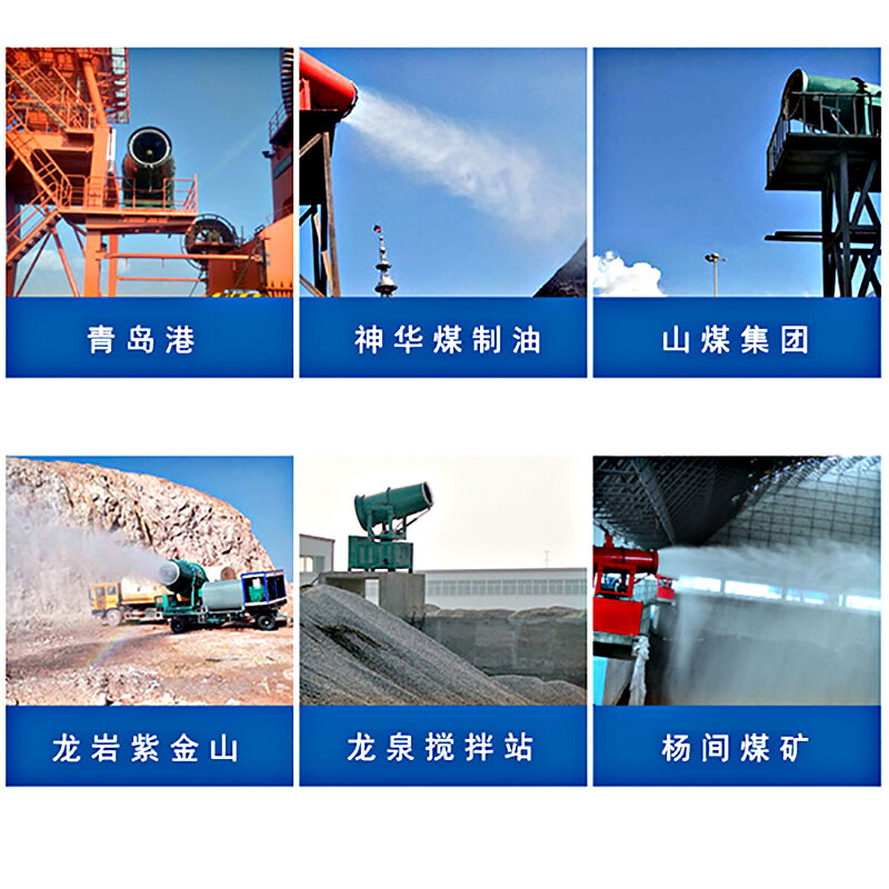 2、雾炮机喷出的雾粒在遇到烟尘时,产生这种雾状体,能迅速将烟尘下降
